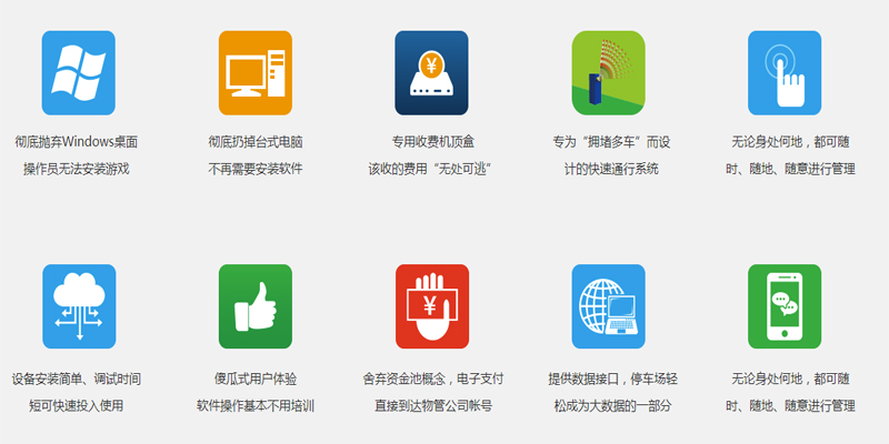 系統(tǒng)功能介紹1、車牌識別,快速通行 對車輛號碼的識別時間可快至0.3s,道閘的開啟時間可快至0.6s;車牌自動識別,不停車,不取卡;采用200萬高清微光攝像機,實現(xiàn)對車牌的精準識別。 2、車費打折 與商場收銀系統(tǒng)對接;停車費可根據(jù)消費打折;商家可用手機直接操作打折;打折數(shù)據(jù)圖形報表統(tǒng)計 3、收費對賬統(tǒng)計報表 財務(wù)數(shù)據(jù)一目了然,不需要財務(wù)人員對賬;云平臺自動生成財務(wù)數(shù)據(jù)報表,遠程隨時隨地可以查看;收費員無法修改或刪除數(shù)據(jù),賭財務(wù)漏洞 4、自助繳費 自助繳費,快捷省時省人;降低了設(shè)備成本與管理成本;資金直達物業(yè)賬號;微信支付、無感支付、手機App繳費,微信公眾號支付,ETC支付,自助繳費機繳費等 5、電子發(fā)票 平臺可代開電子發(fā)票 6、車輛防盜鎖定 解決了車輛被盜,物業(yè)糾紛的問題;車輛入場,可用微信APP“車輛鎖定”功能,車輛出廠,必須通過解鎖后方可放行 7、潮夕車道 最大程度的緩解了高峰期的車輛擁堵情況。在停車高峰期,可根據(jù)車流量更改出入口方向;解決了車主出行擁堵排隊的問題,提升車主體驗; 8、遠程實時維護 物聯(lián)網(wǎng)網(wǎng)關(guān)具有對設(shè)備的管理功能,可自動診斷設(shè)備的運行或工作狀態(tài),遠程實時維護;無需跑現(xiàn)場維護,一人監(jiān)管維護多個停車場,減少維護人員數(shù)量,降低成本。 9、停電手持收費 解決停電失電物業(yè)收費問題,也可對排隊繳費車輛提前收費,緩解擁堵;停電失電,使用APP收費放行;手持機移動收費,支持掃碼繳費;當排隊車輛較多時,可提前收費,手持機支持場內(nèi)車輛實時盤點 10、一位多車管理 對多個車輛的車主可以多車共用同一月票。啟用車位池管理功能,合理收取停車費用。提升商戶滿意度。 11、視頻車位引導(dǎo)、反向?qū)ぼ?/p> 使用手機APP、微信公眾號,自動查詢機找車,室內(nèi)導(dǎo)航尋車輛,有效節(jié)省尋車時間; 12、車流量分析 實時分析車輛流量,及時調(diào)整人力,設(shè)備等通入;分析車牌的地域特性,及時調(diào)整管理措施,增加車位周轉(zhuǎn)率; 停車管理系統(tǒng)主要特色